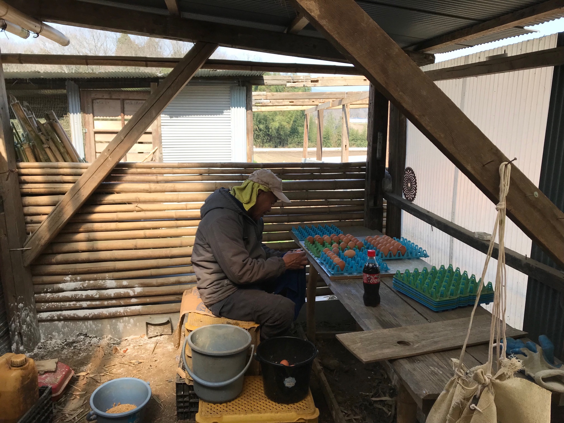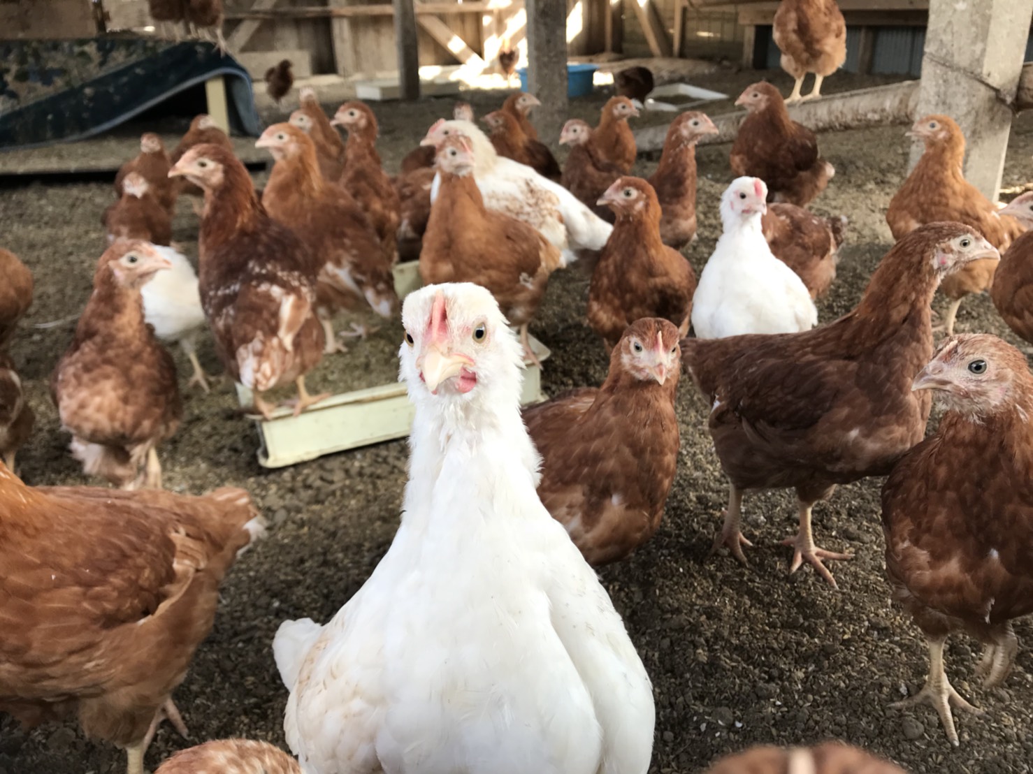 2つ目が鶏飼育の作業です。365日休みなく、エサを腹を空かせて待って