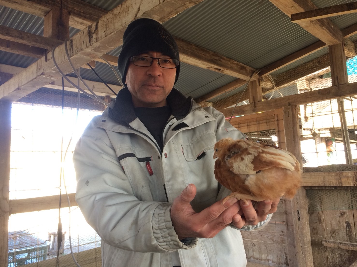 今の時期の作業は、毎日のにわとりの世話、にわとりが産んだ
