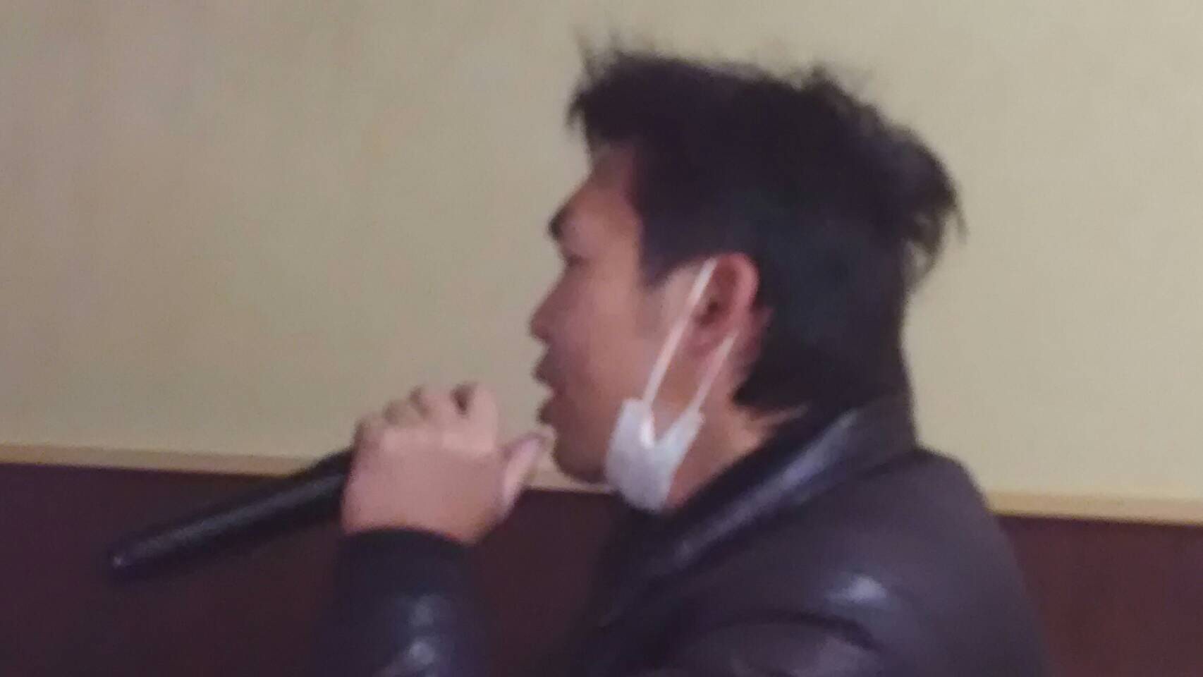 (熱唱する?仲間とその傍らで曲探しに熱中する?仲間)