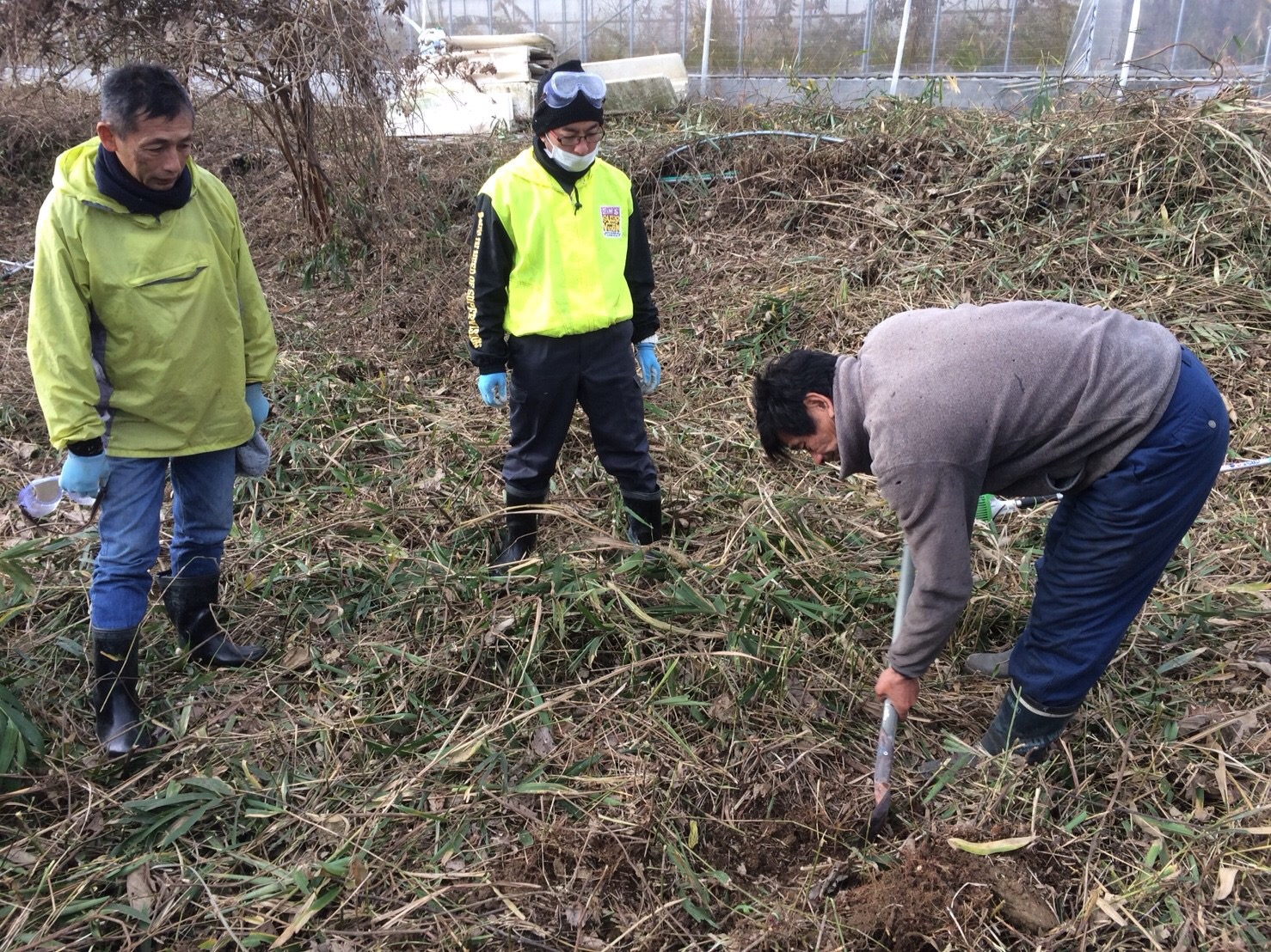 農園は今、農閑期となり土壌改良、田んぼの溝堀、椎茸栽培に使う原木運びなど