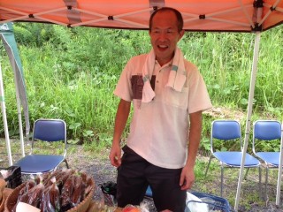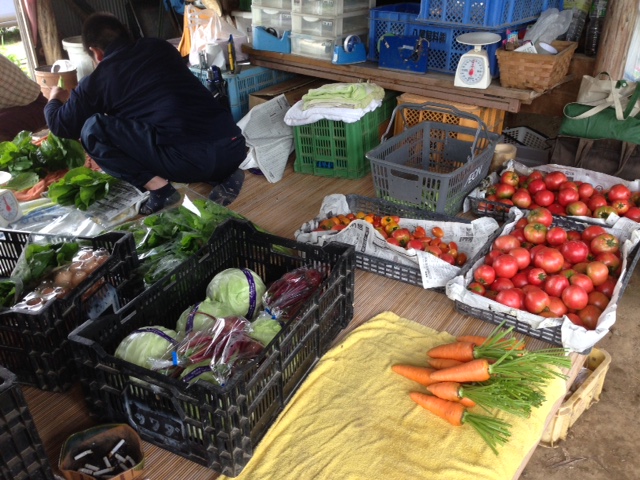 収穫した新鮮野菜、売らせてもらいましたー。今日の売り子は元気いっぱい口上手、カツ君でした~。