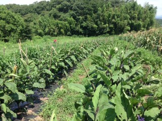 場所が代わって第2農園。 茄子にピーマン、トウモロコシと夏野菜がギッシリと実ってます!