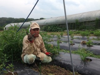 「暑い、暑い」、ハウスでも畑でも挨拶代りのように飛び交ってます。湿度の高さが肌を