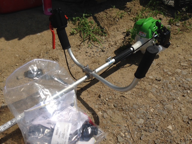 ついに今日、畑に念願の新品の草刈り機が!嬉しさのあまり写真に収めましたよ。大事に使わせて