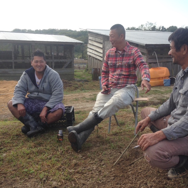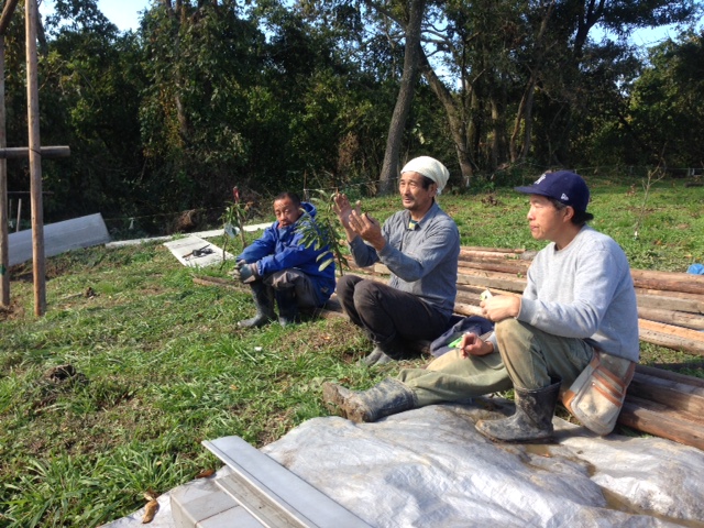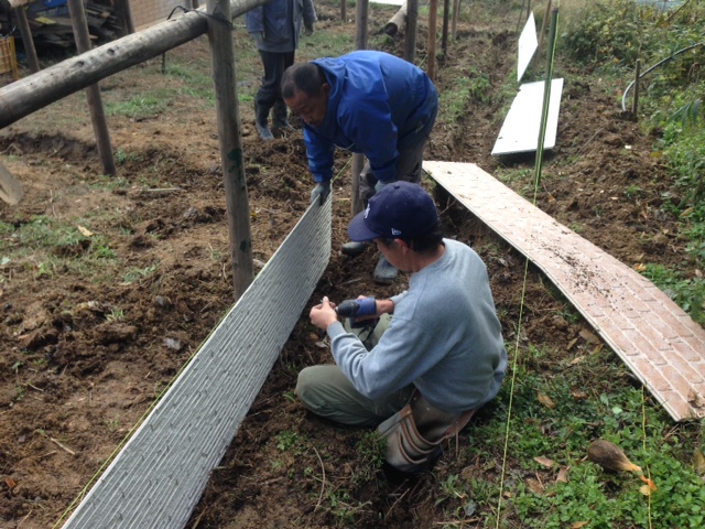玉ネギ畑から呼び戻された二人は鶏舎の増築現場で大工に。