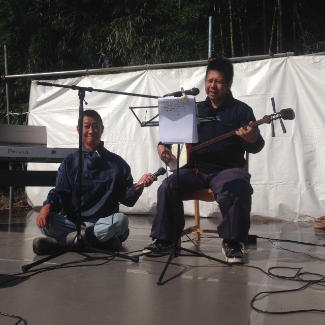秋も深まり冬が目前に迫ってきましたが皆様いかがお過ごしですか。 暫くぶりの投稿になりましたが心配していただいてた方々、誠に申し わけございませんでした。いま座の里の仲間は健康な野菜つくりのた めの土作りに日々励んでおります。 先日お世話になっている「アガぺの家」の収穫祭に招いていただき お礼に座の里のアキ君が得意の三線を披露してくれました。![]()