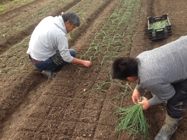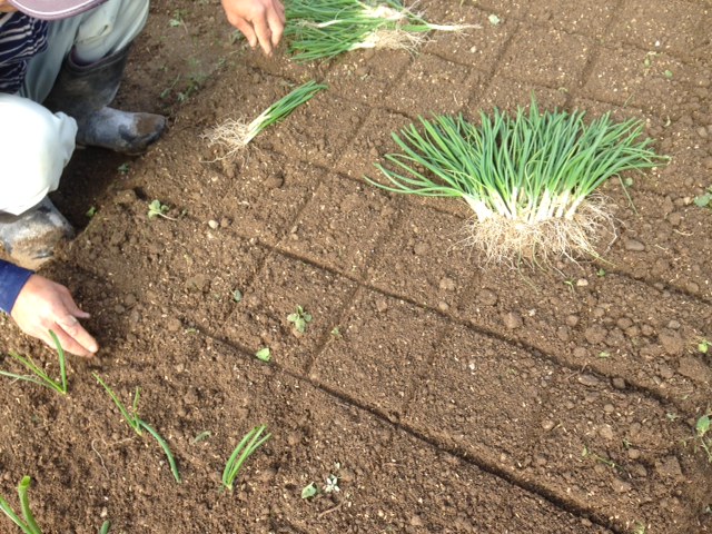 連日のように玉ネギの植付けに追われています。霜で株が浮き上がらないよう 一本一本丁寧に押さえて植付けます。長時間しゃがんでの作業は結構ヒザ腰に くるんですね。