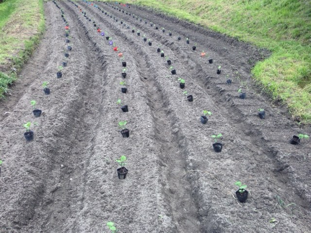 ポットで発芽した苗 マサヤさんと170株植付けました。今ごろ腰にきてます。