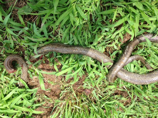 鶏舎からケイさんの悲鳴に近い声が…..。2m位のヘビです。巣箱の鶏卵を狙ってい