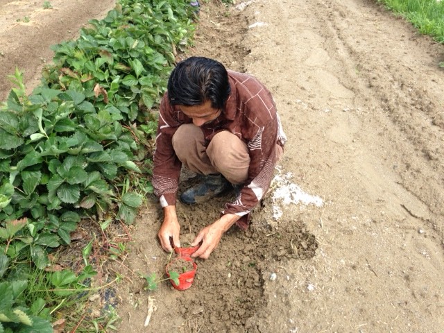 から来季用のイチゴの苗取り作業中。