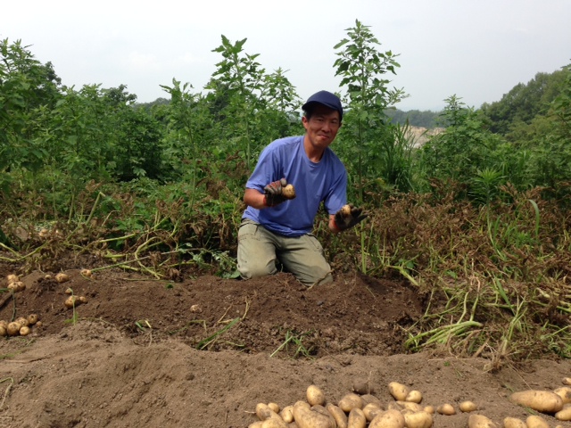 両手にジャガイモ。豊作です。カっちゃんです。