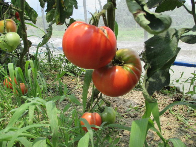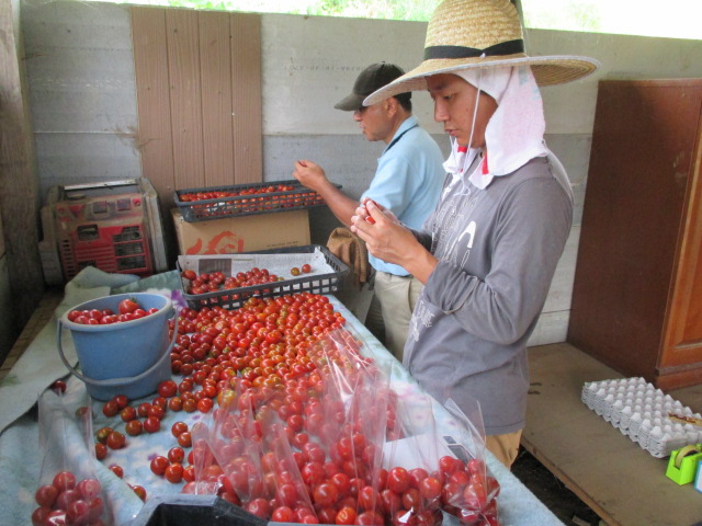 伊賀第1農園のビニールハウスではトマトが実り始めてきてます。