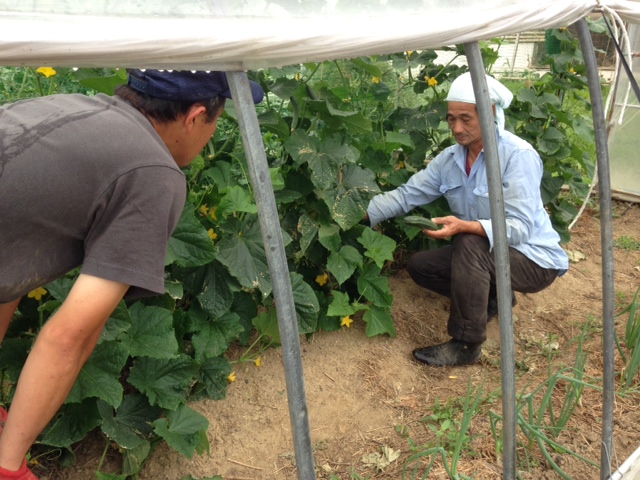 こちらは、まさやん。キュウリも大きくなってまっせ~!
