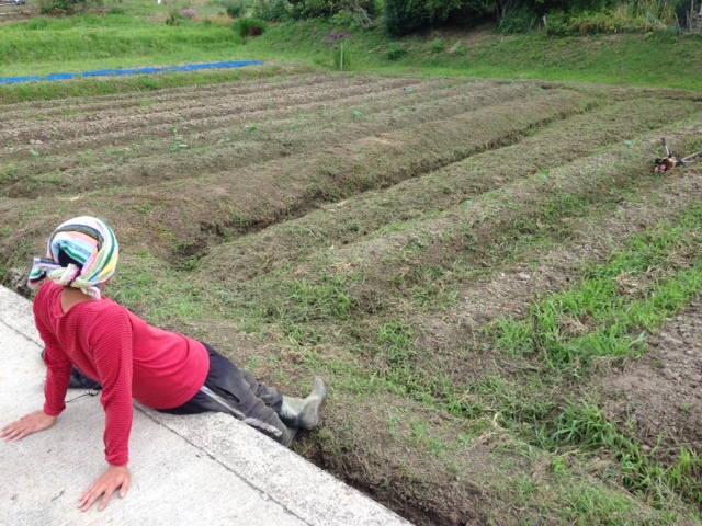 里いも畑の草刈り作業を終えヘトヘトになりながらも