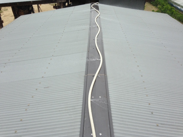 これはヘビじゃないです。だれが見てもホースです。鶏舎の屋根の冷却装置です。先日