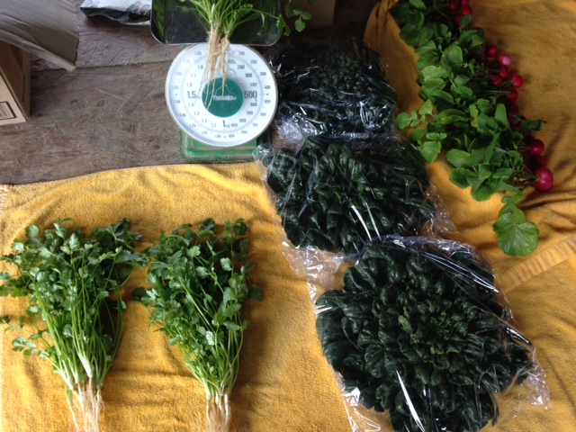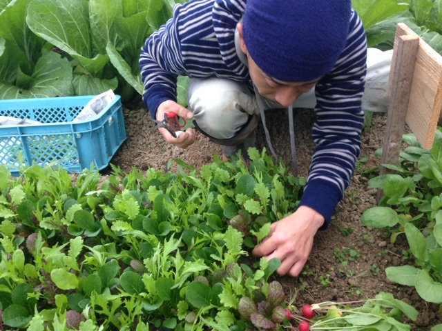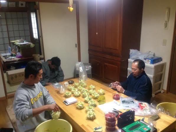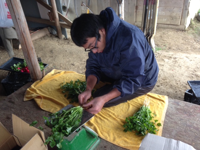頂く野菜の収穫、水洗い、袋詰めを黙々とこなしております。