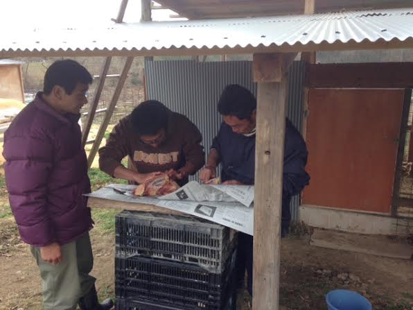 そして作業の合間に鶏舎の卵回収です。回収した卵ひとつずつ