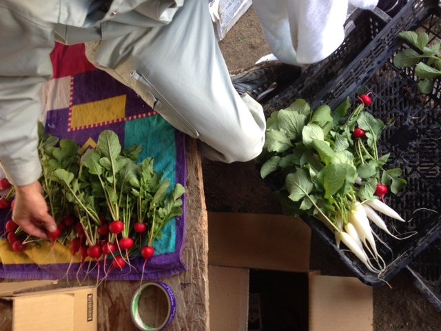 足と手しか写っていないですが正真正銘、タカシ君です。 綺麗な美味しいラデッシュです。
