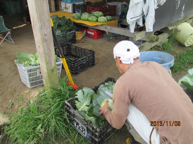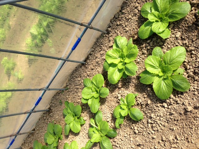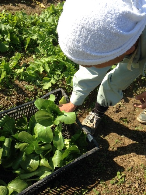 チンゲン菜の収穫。