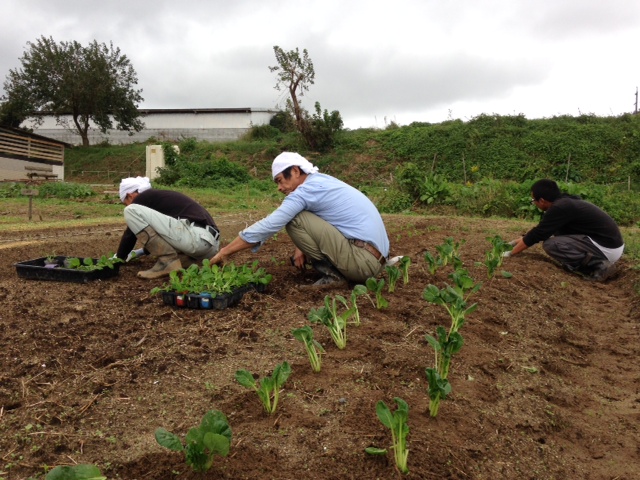 お世話になっている「アガぺの家」さんから戴いたターサイの苗を皆で定植しました。