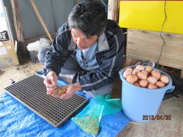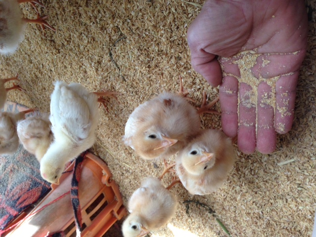 昼食後、鶏舎の中での憩いの憩いのひととき。ヒヨコちゃんに遊んでもらいます。
