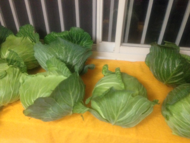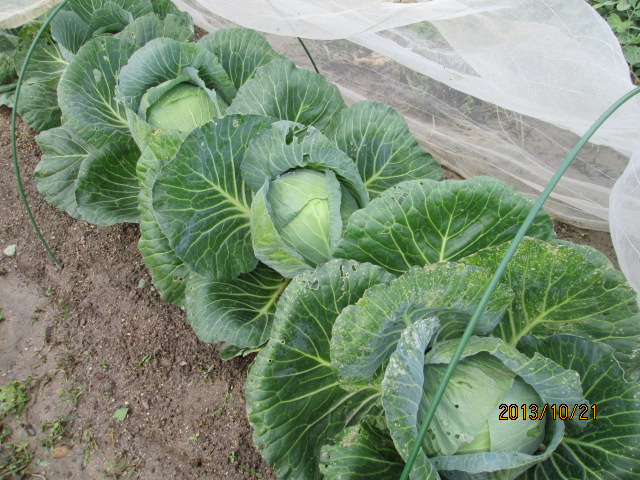 サツマイモ、里芋、ニンジン、ラディッシュ、大根、葉大根 水菜と、種類も豊富です。 キャベツもきれいにできました。