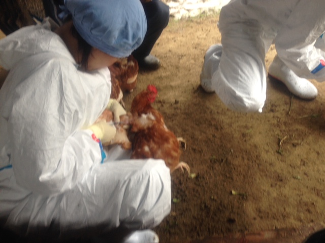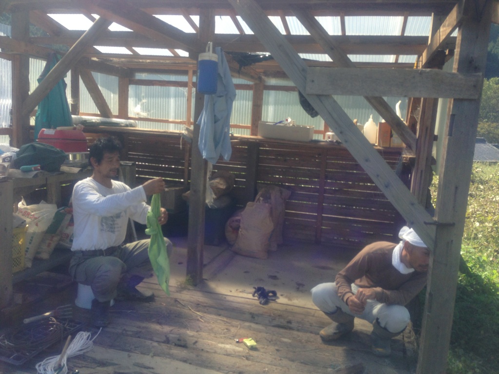 里芋を洗った後、伊賀の畑に戻ると保健所の人が来て、ご指導と 鶏の状態など見た後、採血をして帰っていかれました。 冬場になると渡り鳥がインフルエンザを運んでくるので、血液検査をしてくれるそうです。 安全で安心な玉子がうまれるのです。