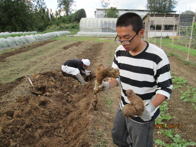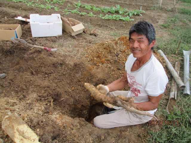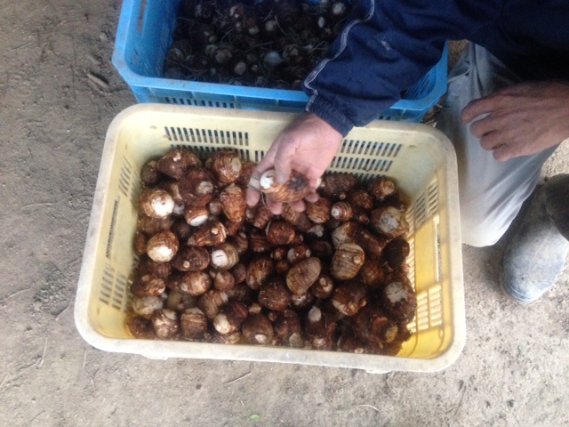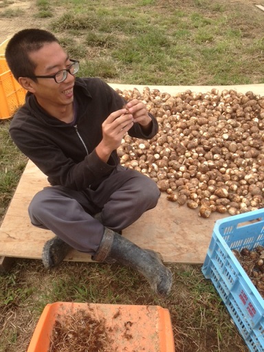 クヌギの木を伐採して、乾燥させてカットして菌を打ちます。 細かい工程は、後のブログでアップしますね。 山添産の里芋です。 2度の土寄せで、大きくなりました。 まだ沢山ありますよ~。